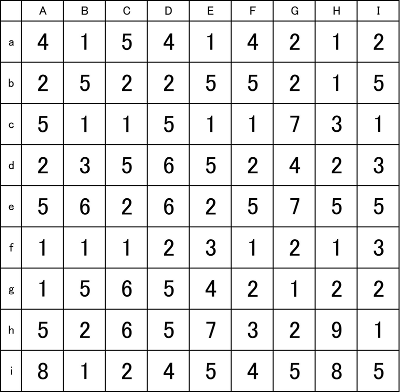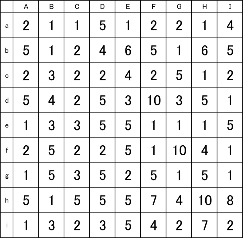 ※図1- 1. タテの位置をアルファベット大文字、ヨコの位置をアルファベット小文字で示した格子状の解答欄を用います。